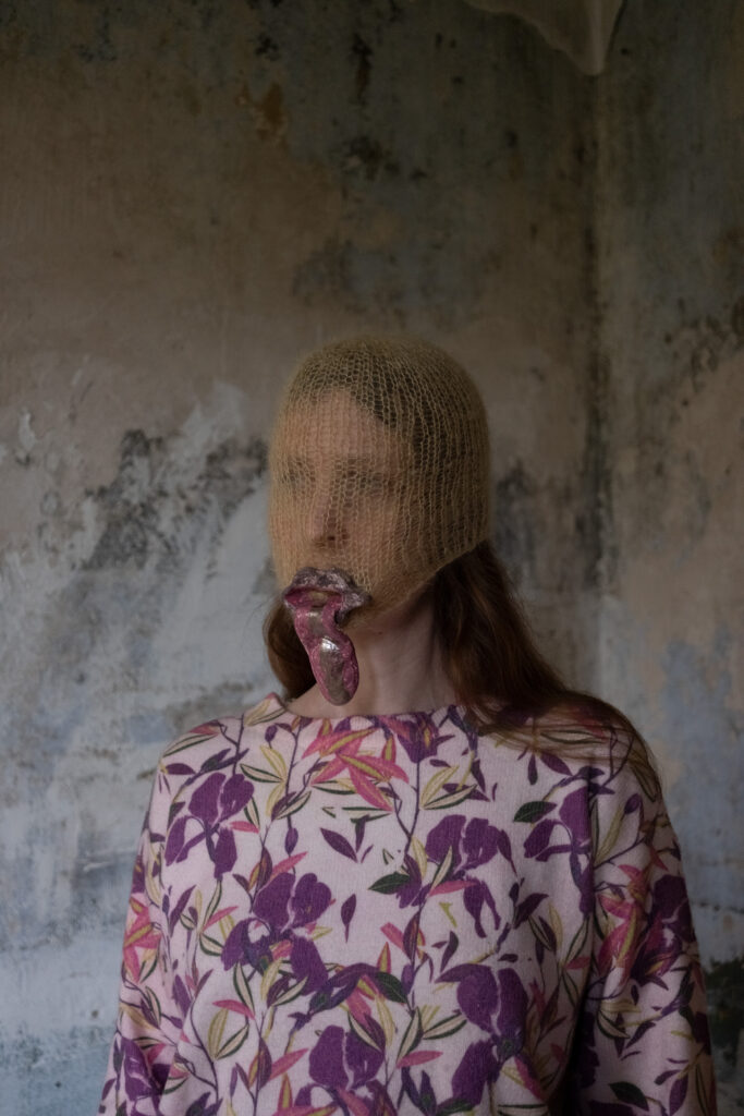 Practice-led DPhil: Portfolio - Jasmin Reif Photography An Ordinary Shopping Day, 2024, Knitted mohair/silk, salt dough Lacoste, 2025, Knitted mohair/silk, salt dough Anatomy, 2025, Knitted wool, ceramic Trigeminal Neuralgia II, 2025, Knitted mohair/silk, ceramic Shout, 2024, Knitted mohair/silk, salt dough Portrait, 2024, Knitted mohair/silk, salt dough Trigeminal Neuralgia I, 2024, ceramic In My Own Face, 2023, Knitted wire cable, crystals, rubber teeth Vessels, 2025, Knitted mohair/silk, salt dough, ceramic Silence, 2024, ceramic Colour Red, 2023, Knitted mohair/silk, tape Brain, 2025, Knitted polyester, salt dough, ceramic Trigeminal Neuralgia III, 2025, Knitted mohair/silk, salt dough, ceramic Untitled, 2024, Knitted wire cable Video Crows & Whispers, 2023, min Slug, 2024, min Spider, 2022, min